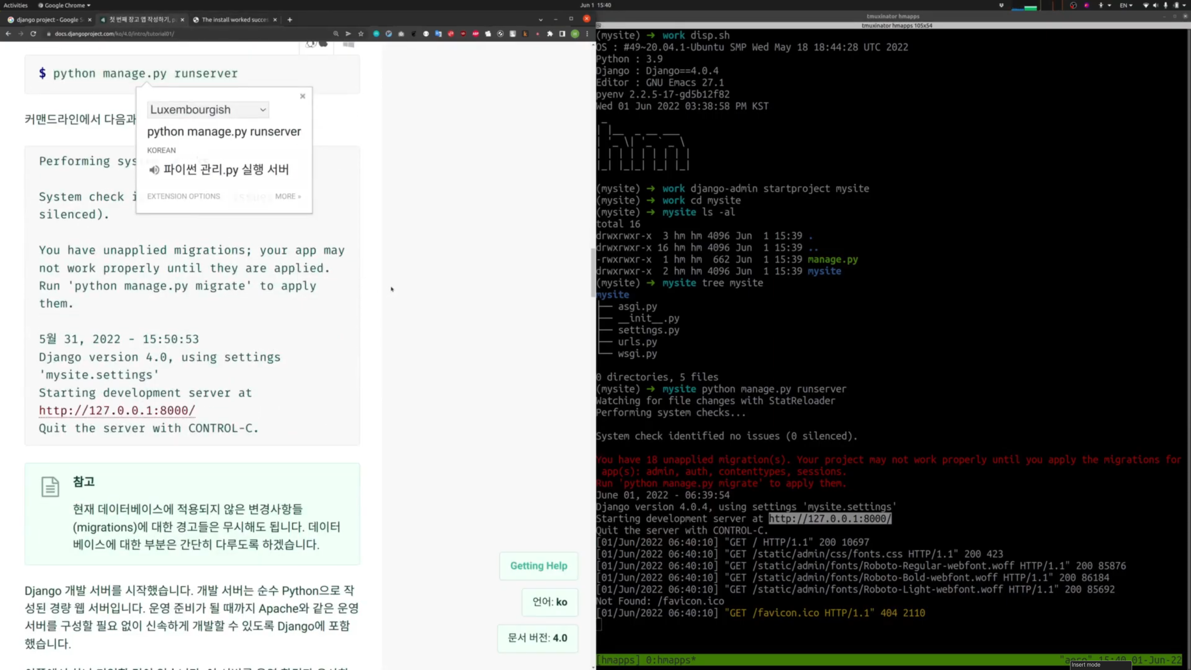 문서: https://docs.djangoproject.com/ko/4.0/intro/tutorial01/