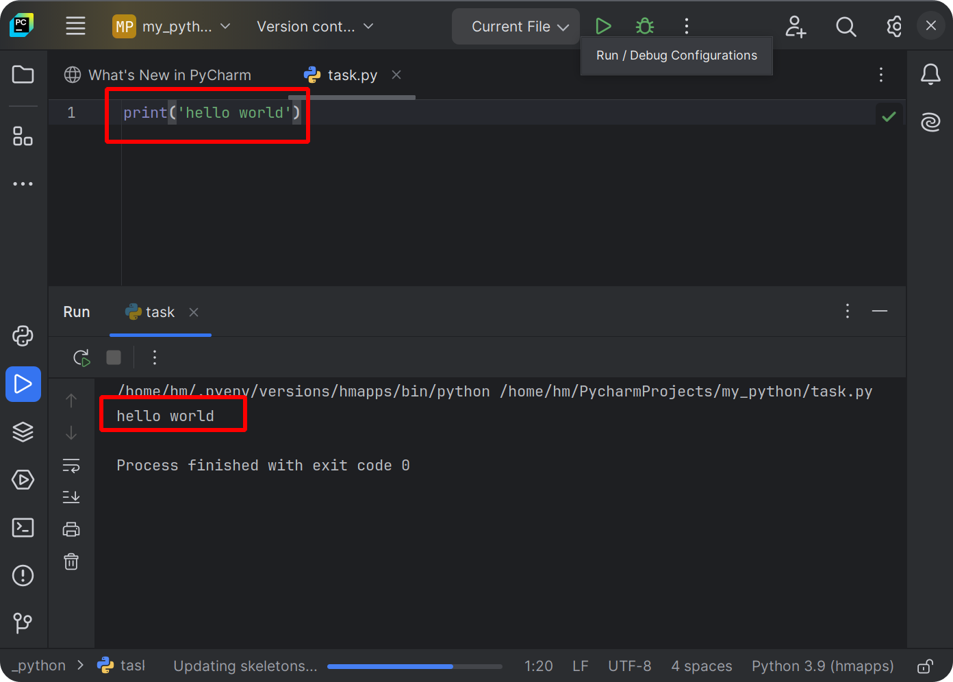 - 프로젝트 생성 후, Project 창에서 새 Python 파일을 추가할 수 있습니다. 파일을 생성한 후, 코드를 작성해 보세요. 예를 들어, 간단한 print("Hello, PyCharm!") 코드를 작성해 보면 좋습니다.