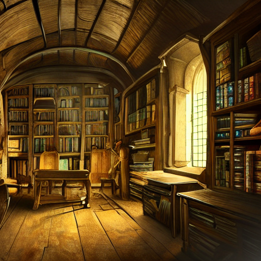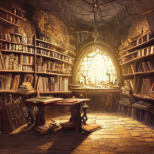 Inside a dimly lit, ancient wizard's study, filled with dusty old books, bubbling potions, and strange magical artifacts. A large wooden desk is cluttered with scrolls, glowing crystals, and a massive tome that emits a faint light. The walls are lined with shelves filled with mystical objects, and a large window overlooks a starlit sky. The air is thick with the scent of incense, and the soft glow of candles casts flickering shadows. Rendered in ultra-high detail, 8K resolution, with a mystical, fantasy vibe.
