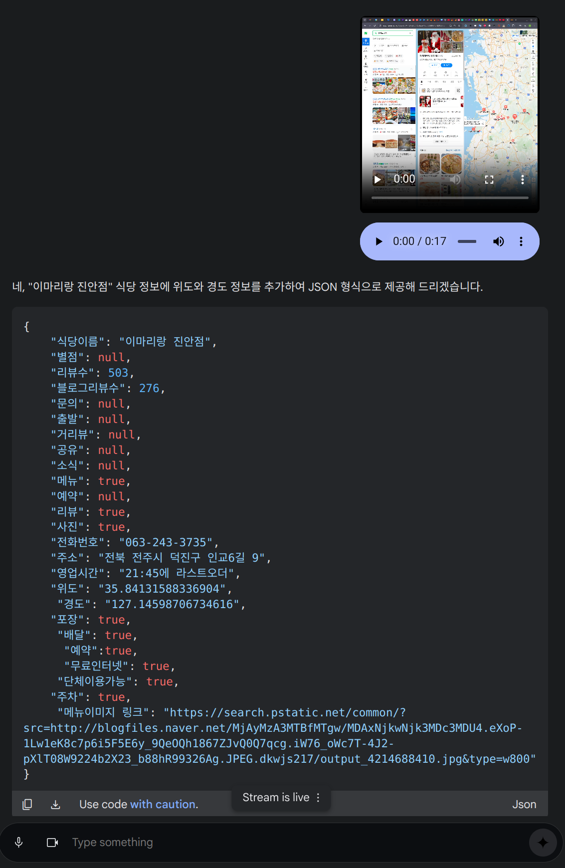 Google AI Studio 활용 사례: 네이버 지도에서 식당 정보 추출하기